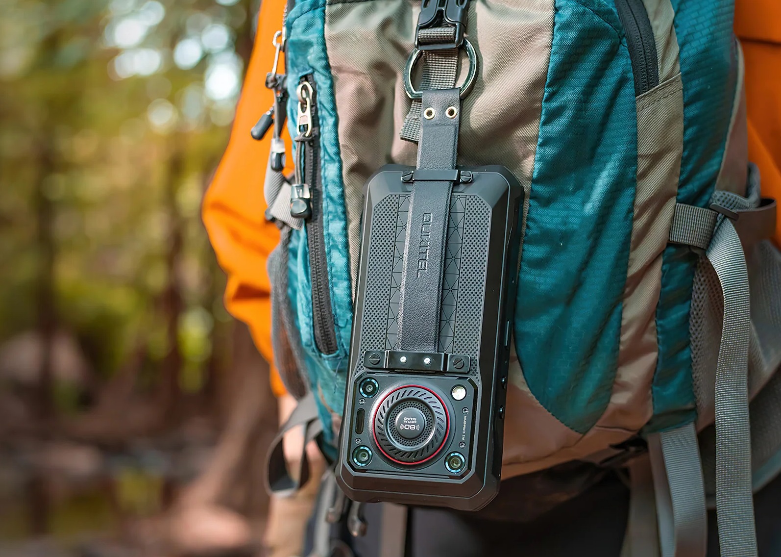 Однако при весе 577,5 грамм и толщине корпуса 2,72 сантиметра телефон Oukitel является исключением даже среди защищенных телефонов. Поэтому производитель предусмотрел ремешок с металлическим кольцом для крепления к карабину, рюкзаку или ремню: в любом случае телефон невозможно будет удобно носить в обычном кармане брюк.